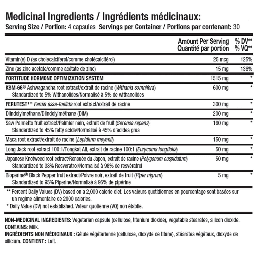 Each bottle contains a full 30 day supply of clinically studied and proven ingredients. To use, take 1 serving (4 capsules) of FORTITUDE daily with or without food. For best results, combine with a proper diet and training regimen. Do not exceed 4 capsules per day.