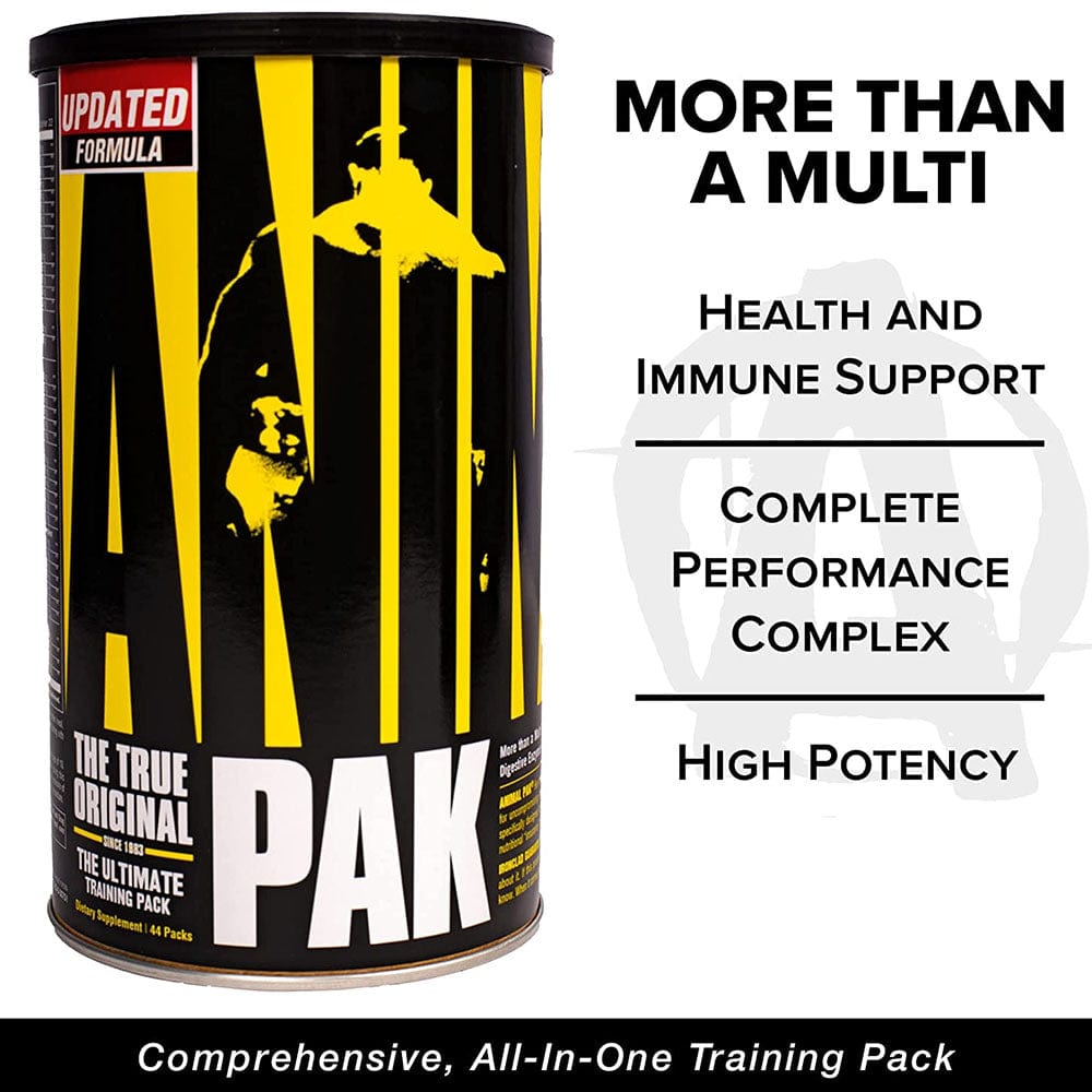 Animal Pak 44/packs is a super vitamin pak designed for athletes and bodybuilders. It provides complete and comprehensive nutrition with a high potency multivitamin and mineral complex, powerful antioxidants and digestive enzymes. Each dose contains over 75 active ingredients.