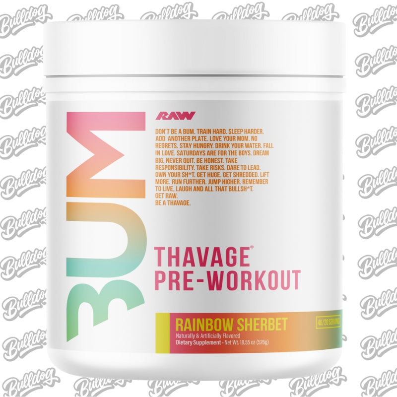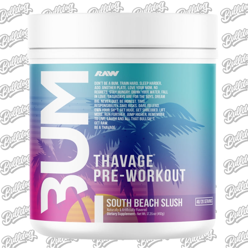 These ingredients aid in improved cellular hydration, mental focus and energy, blood flow and fat burning. Chris Bumstead personally designed Thavage Pre-workout`s flavoring system to create a top-of-the-line product with industry leading taste profiles.