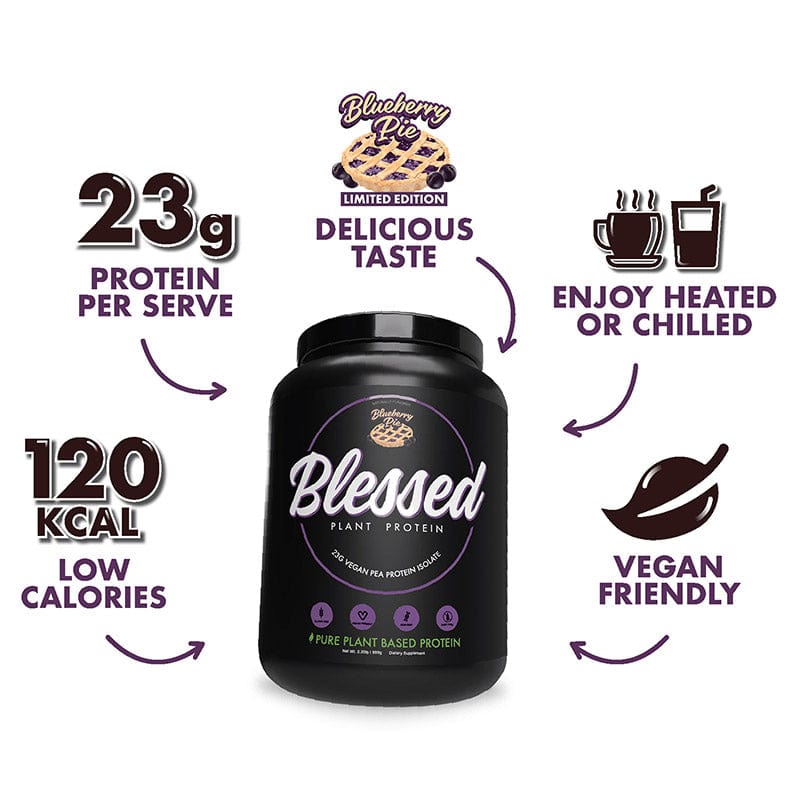 Blessed Protein is an all-natural and vegan-friendly pure golden pea protein isolate that contains 23g of protein per scoop and all of the essential amino acids at only 4g of net carbs. This means Blessed will keep you fuller for longer without any bloating. No need to stress out about your daily protein intake with Blessed Protein.