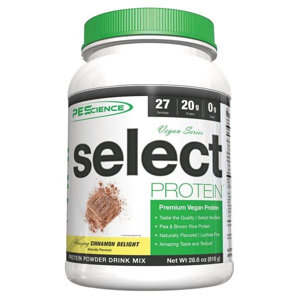 The New Standard in Vegan Protein, PEScience Vegan Select Protein 27 servings, is a top quality product crafted with perfectly formulated ingredients. It contains a blend of two top quality sources of plant protein, pea protein and brown rice protein, that have been clinically tested in humans for their effects on muscle building. The combination of these two protein sources can achieve an amino acid profile nearly identical to dairy or egg protein. Select Vegan Protein contains no fillers, no fluff, no label dressing. It is sweetened only with stevia and each flavor is crafted with PEScience's special flavoring craft to create the absolute best taste possible.