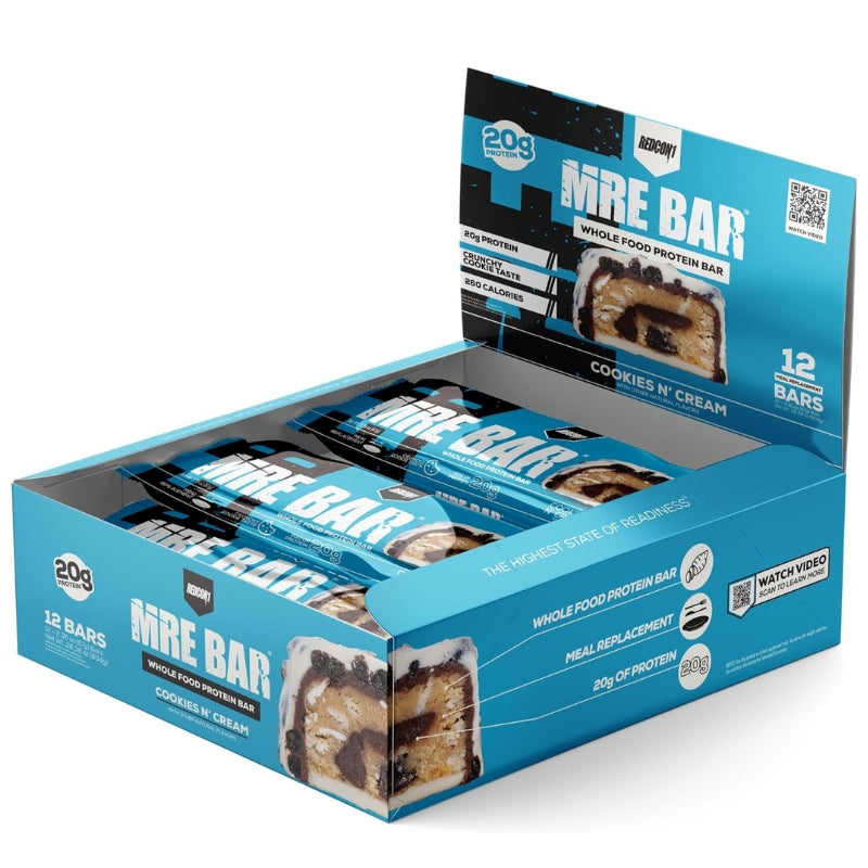 Redcon1 Meal Replacement Bar Made of Real Food! Real, whole food sources Delicious, dessert like flavors Formulated to help repair and recover muscle tissue No whey - just whole food proteins MRE Bar Just when you didn’t think MRE could get any better we upped our game with MRE Bar. This real food bar will change your outlook on bars forever. The days of heavy sugar alcohols and whey protein added to your bars are long gone. Just like with the powdered MRE, the bar contains only real food sources which won’t upset your stomach, cause cramping, or give you unwanted gas.*