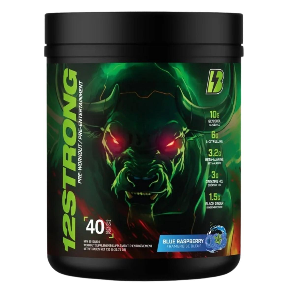 Bull Nutrition12 Strong pre-workout purposely combines 12 ingredients to take your workouts to the next level with intense energy, mental focus and muscle building agents that the competition is too afraid to combine. Mind-blowing pumps that will make your muscles bulge like a bull. Unlike any other Pre-workout, 12 Strong’s gets better and more effective, the longer you use it.   No more will your pre-workout feel complacent or make you feel as if you’ve hit a plateau.